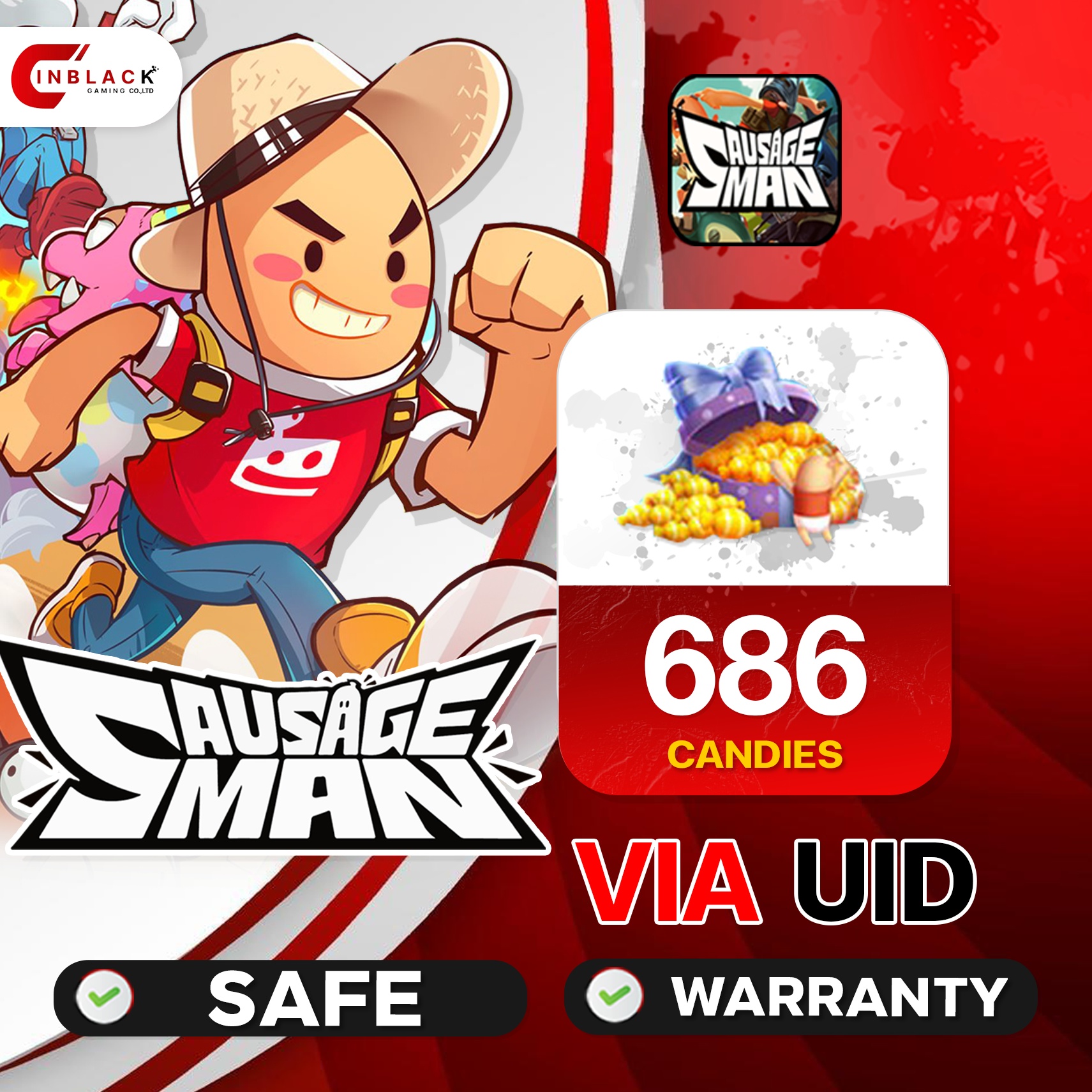 Sausage Man Top Up SAUSAGE MAN - 686 CANDIES VIA UID open 24 hr by InblackM.