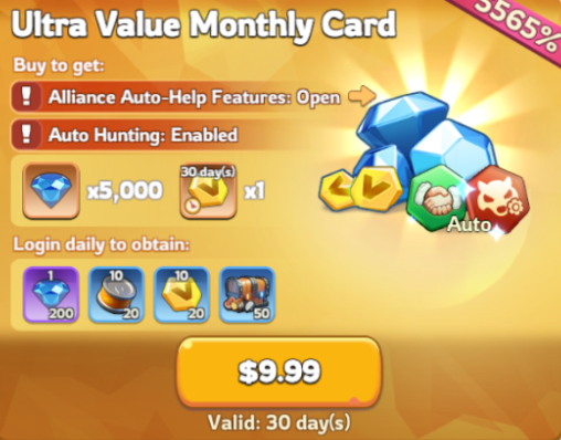 Whiteout Survival Top up Ultra Value Monthly Card via LOGIN