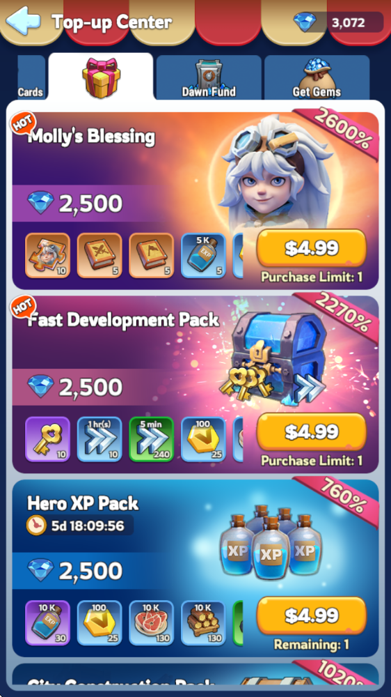 Whiteout Survival Top up Any 4.99 Pack via LOGIN